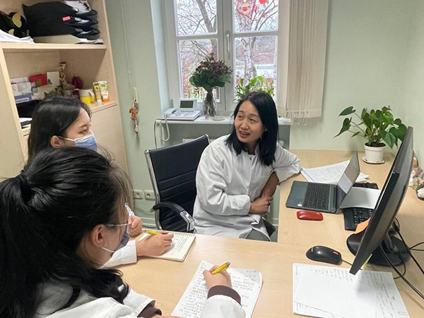 清晨8点,内科医生时大夫和刘大夫已开始查房。他的患者中有慕名而来的德国慢性病患者,也有旅居欧洲的华人和欧洲其他国家的患者。“来这里的大部分病人是疼痛类,其次是乏力和肠胃病,然后是抑郁焦虑,许多病人是冲着中药调理来的,但问诊时仍需结合西医检查数据,解释工作比国内更繁琐。”时大夫说:“由于医院仅有2名内科医生,他和刘大夫最多一天接诊6位患者办理住院,详细询问病史,从未降低诊疗标准。”由于中药汤剂的味道并不美好,偶尔有病人试图放弃,这时刘大夫和时大夫都会耐心与患者沟通让患者坚持,最终都会收到满意的效果。